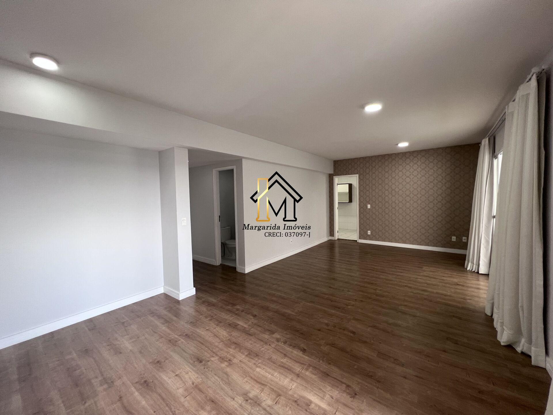- Piso laminado na sala e nos quartos.