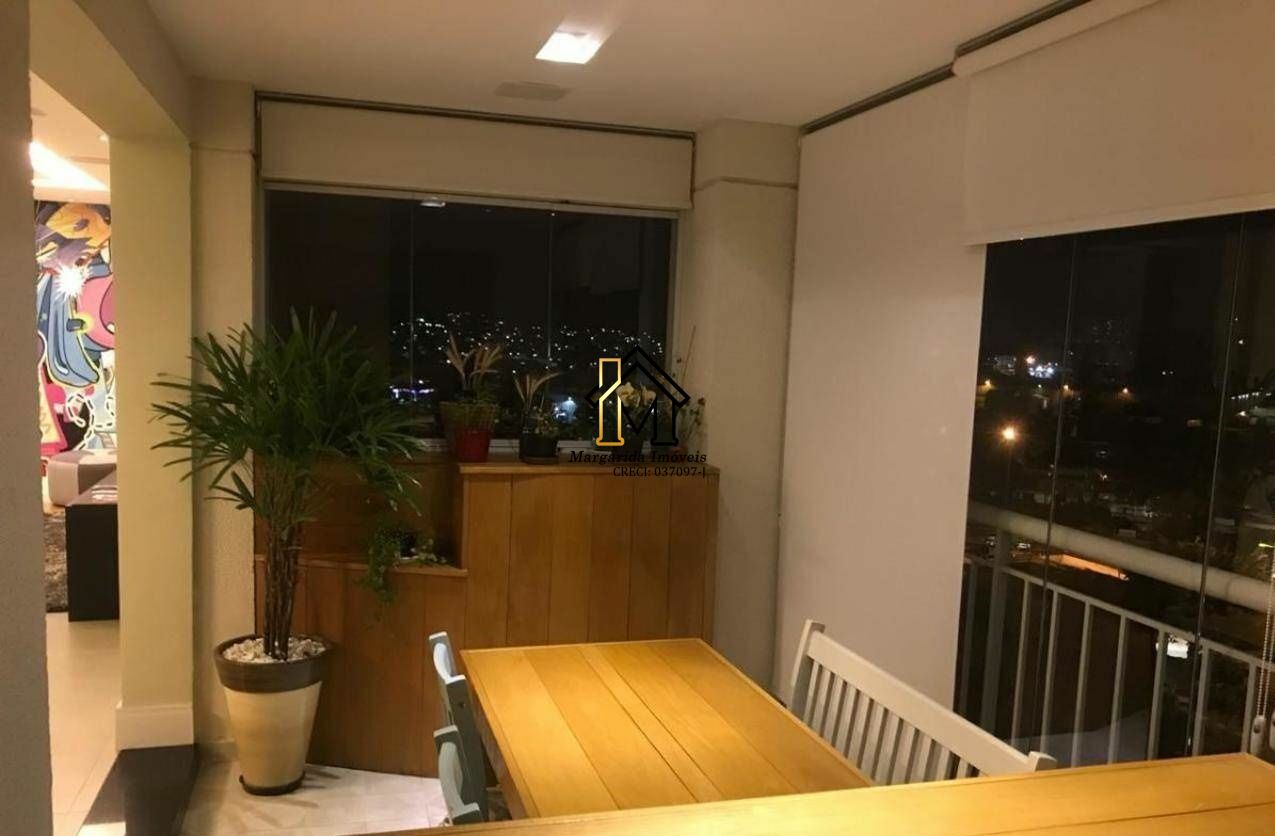 Apartamento reformado de 106m² com 2 suítes, possui ar condicionado e a varanda gourmet toda envidraçada e ainda conta com a persiana.